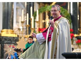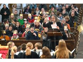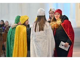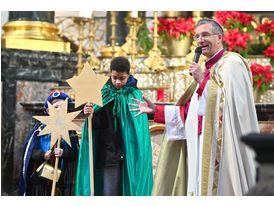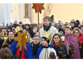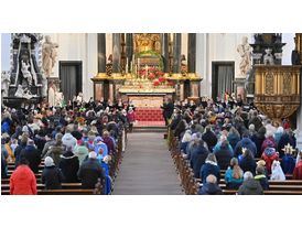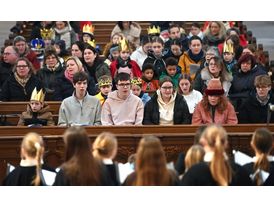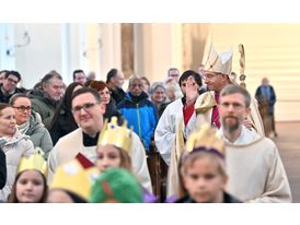 Das Programm im Fuldaer Dom begann mit einem Singworkshop des Chores und der Begrüßung der Gruppen. In seiner Predigt betonte Bischof Gerber, dass es wichtig sei, „den König in denen zu entdecken, die uns fremd sind“ – so, wie es auch die Heiligen Drei Könige getan haben. Der Bischof hob besonders hervor, dass es auch immer wieder darum gehe, die Rechte von Kindern und Jugendlichen zu respektieren und zu achten.